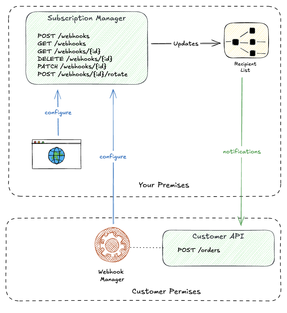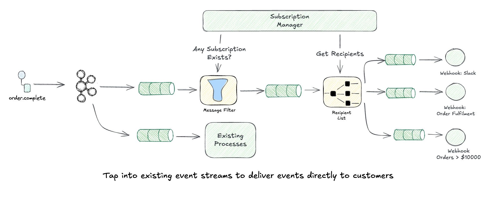 This is the split: convenience integrations serve customers who want turnkey solutions, while webhooks serve customers with developers who need custom behavior. Same Recipient List infrastructure, different audiences.