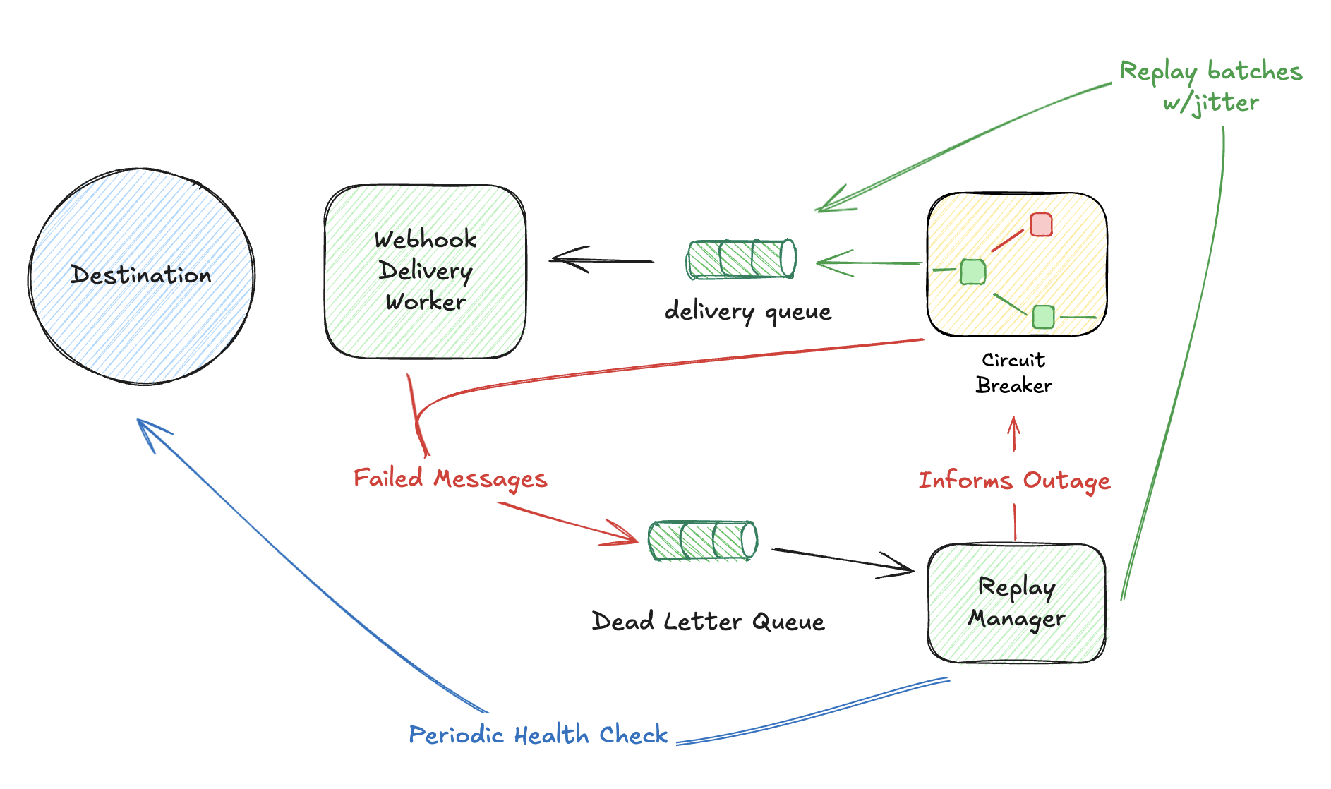 But manual replay is reactive. A sophisticated platform detects outages automatically, holds traffic during downtime, and gracefully resumes delivery when the endpoint recovers.