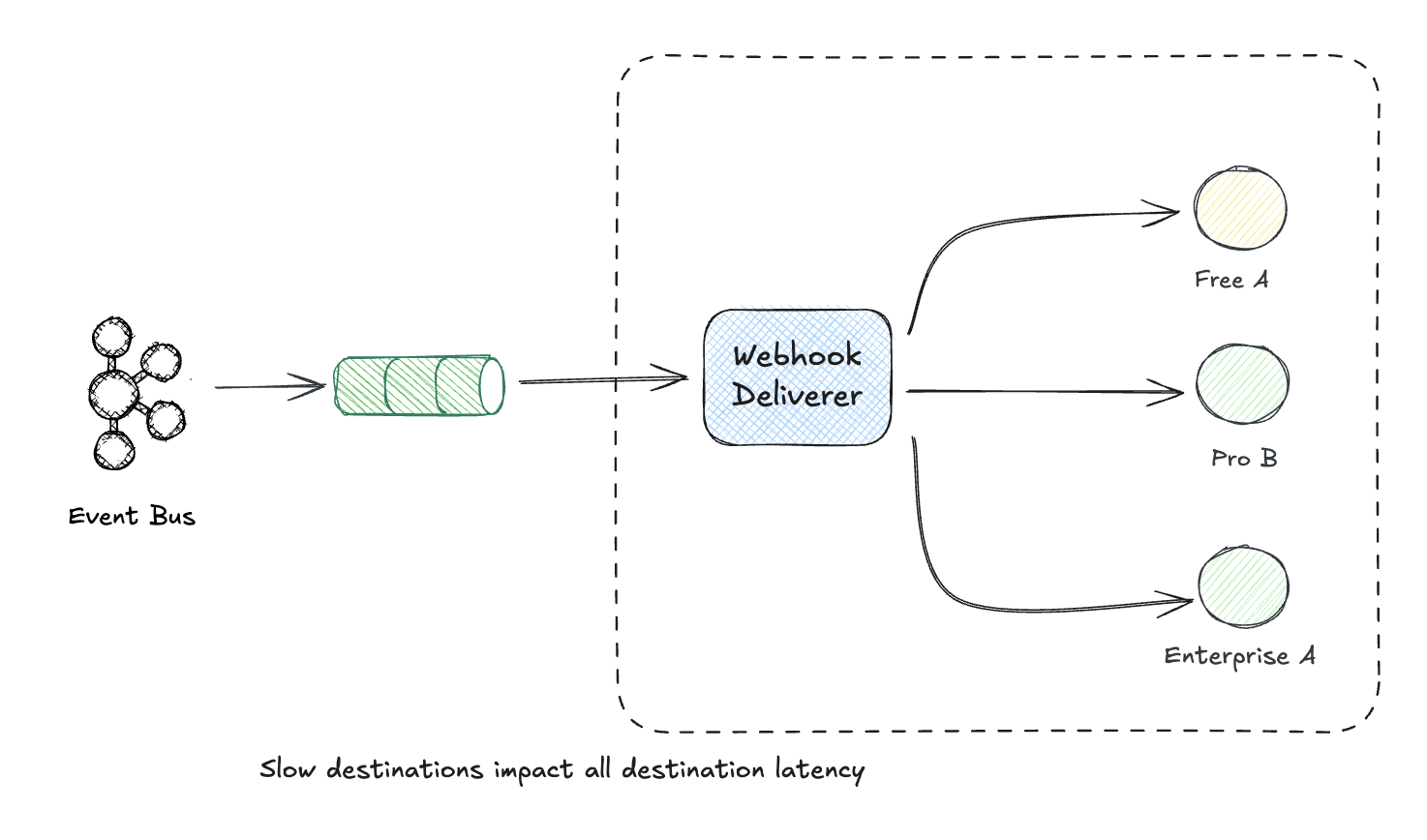 The same isolation principle applies to webhook delivery. Without bulkheads, one customer’s misbehaving endpoint can degrade delivery for everyone: