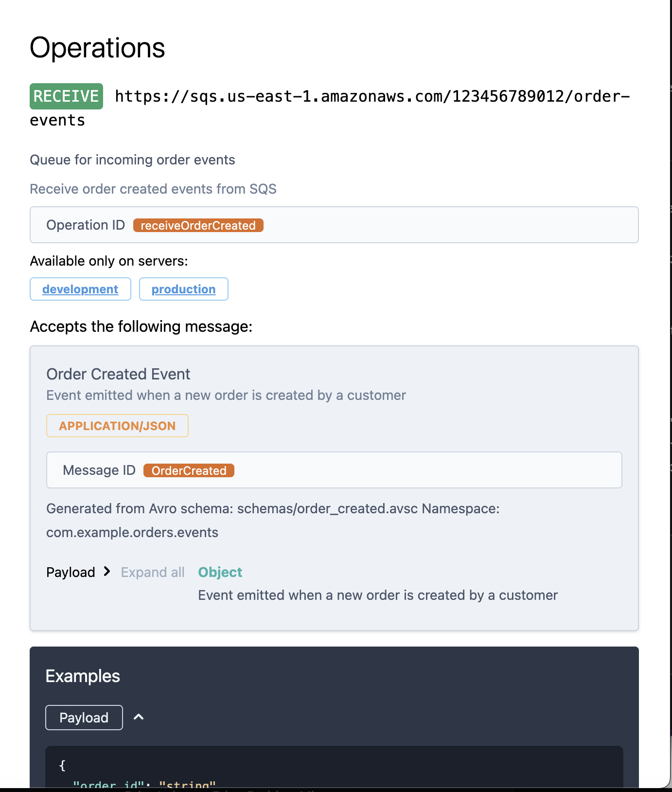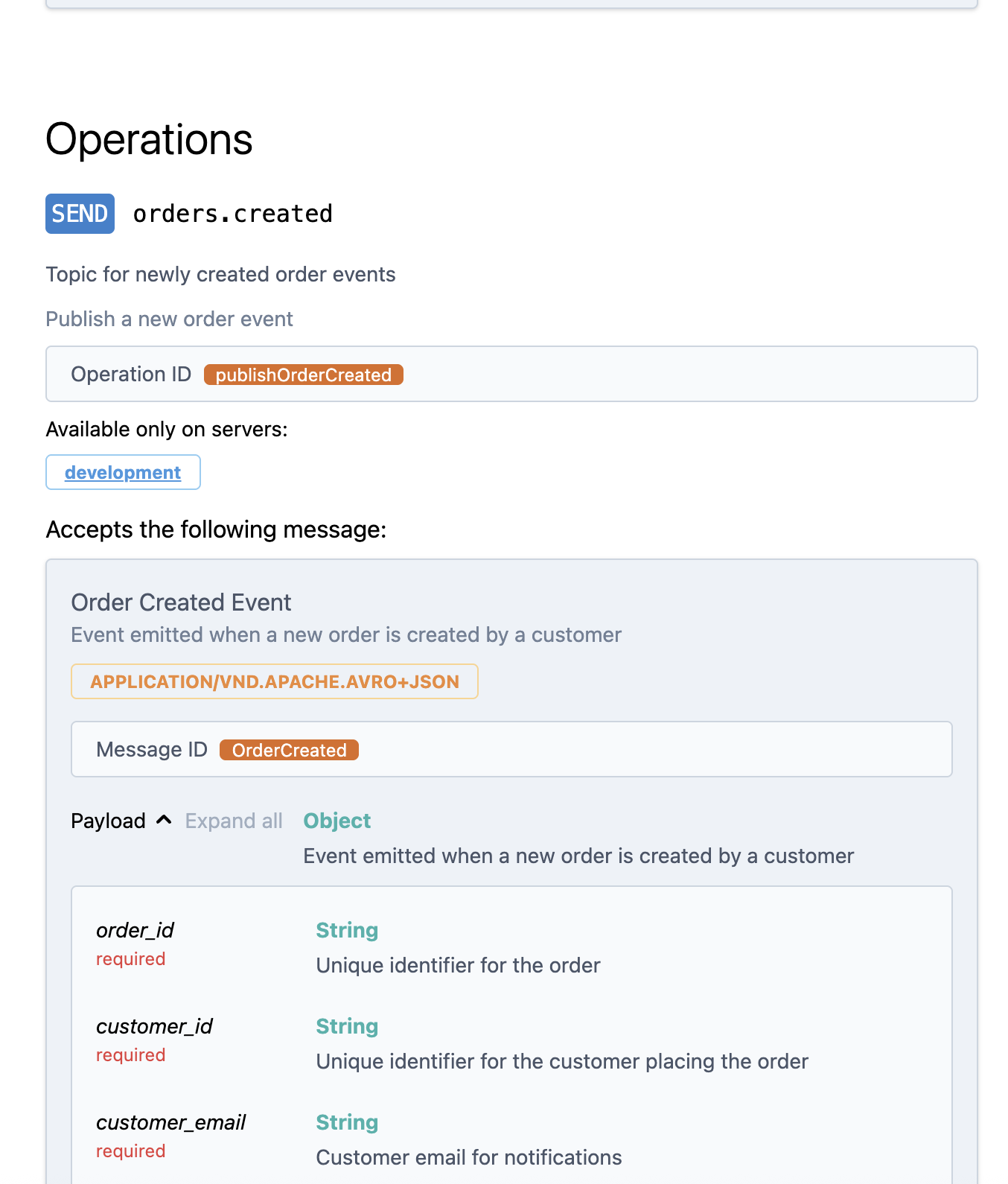 schema=OrderCreated, # This drives schema generation