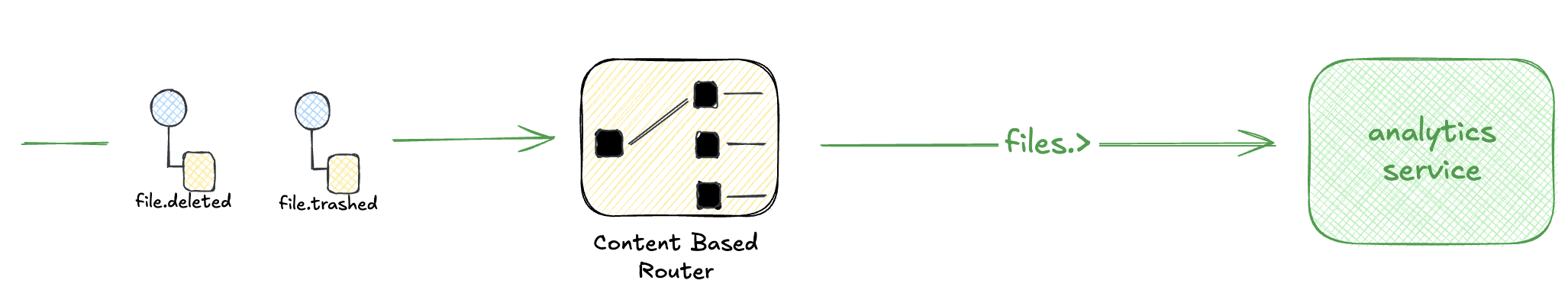 When a consumer subscribes to multiple event types (like our analytics service with files.>), it needs to dispatch messages to different handlers: