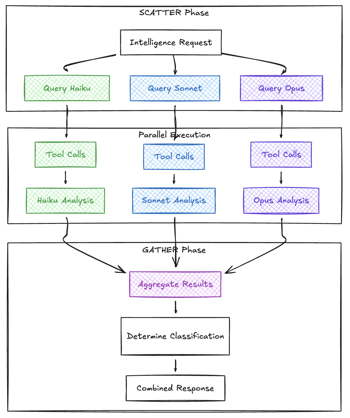 | Scatter-Gather | Parallel queries to Haiku, Sonnet, Opus |