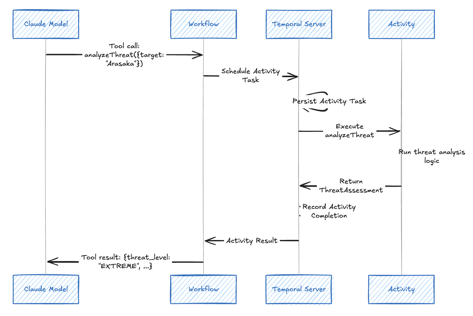 temporalProvider.languageModel()are automatically wrapped as Activities.Result Propagation: The workflow result flows back through Temporal to the waiting client via